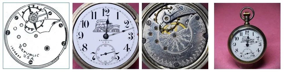 These photographs are of Century U.S.A. Trading Watch dials. The first one is attached to an ordinary Model 12 Century U.S.A. movement, and the second one is attached to a Model 12 R.R. Special movement.