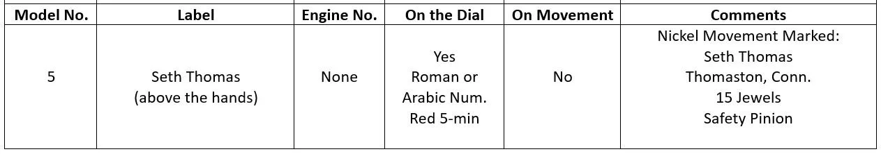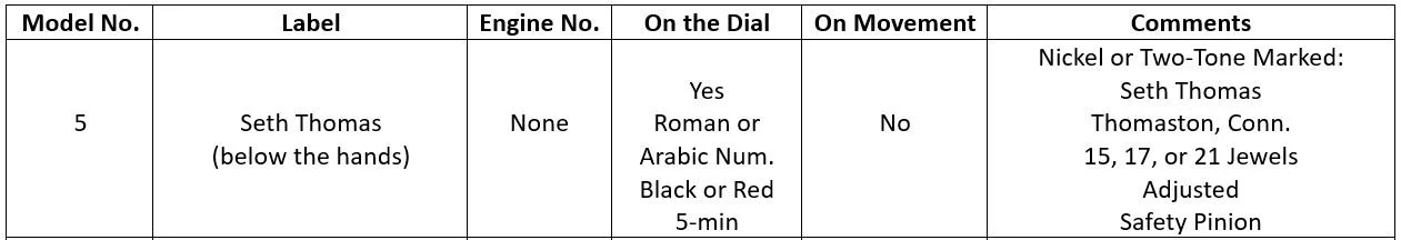 Withing their regular product line, the Seth Thomas Watch Company did produce a limited number of high-grade pocket watches that met the standards of the Railroad Safety Board to be used in rail transportation. Among those high-grade pocket watches were all of the Seth Thomas Maiden Lane grade pocket watches, the Model 5 marked grade 260, and the Model 5 marked grade 382. Other railroad grade watches were also produced by Seth Thomas as special orders or private labels at the request of certain customers.