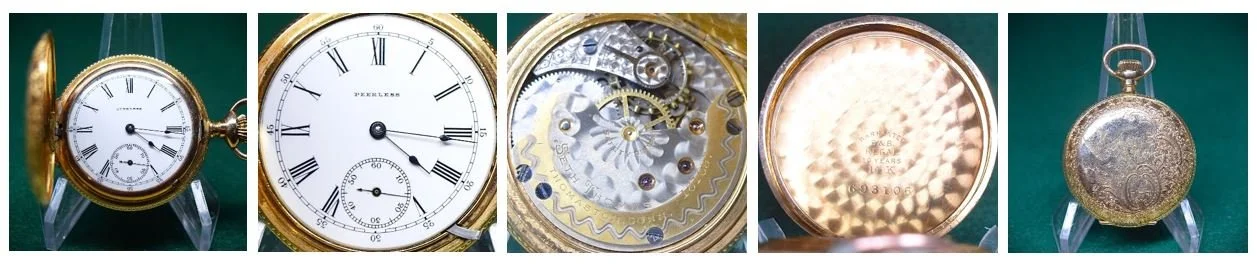 Peerless Watch Co. is a private label in Seth Thomas 18-size Model 10 and Model 11, and 6-size Model 16. Peerless Watch Co. movements were seen in the Brooks Optical Company catalog.