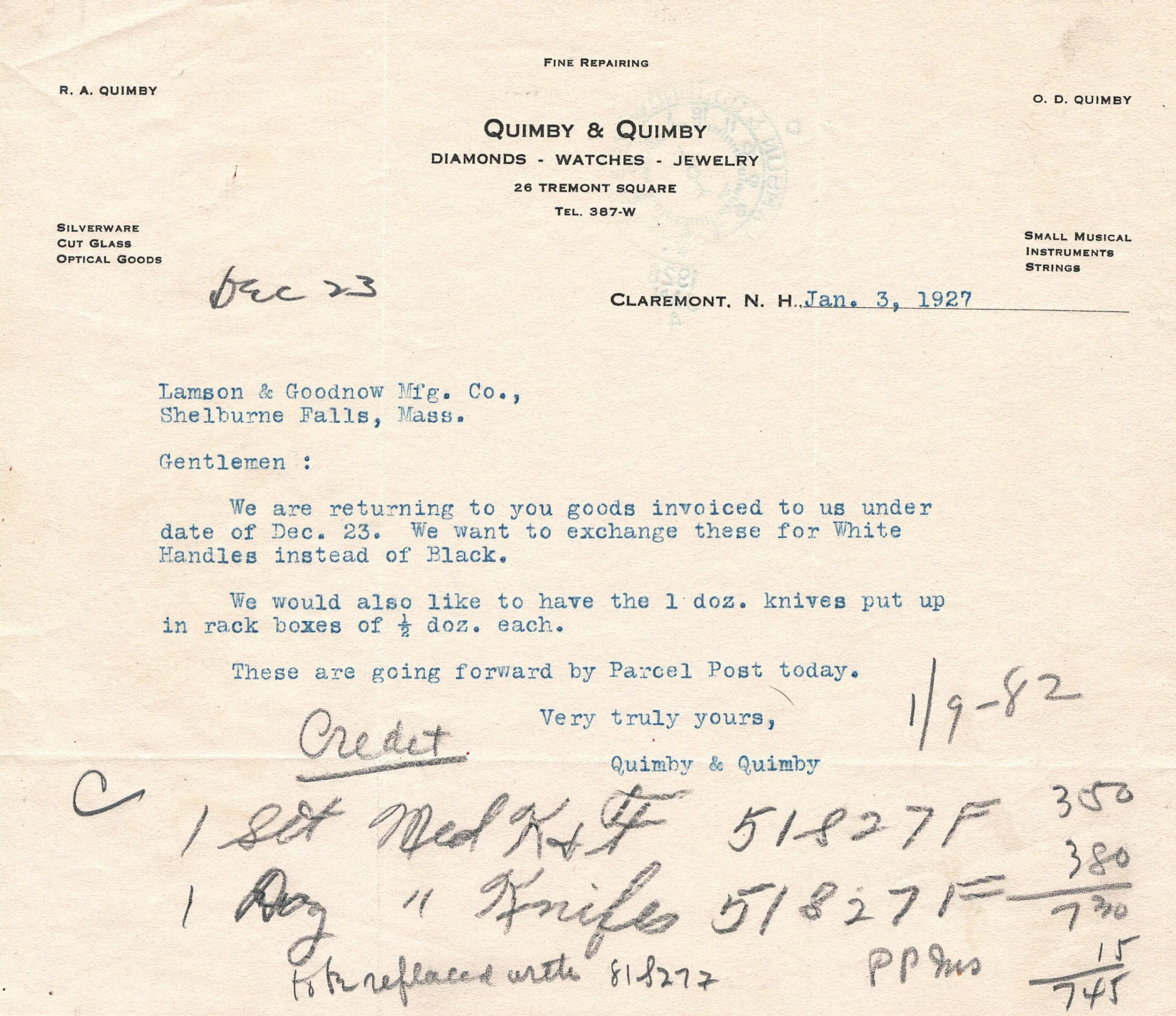 Quimby & Quimby is a private label in Seth Thomas 6-size Model 14. Information from the 1916 Claremont New Hampshire City Directory: Quimby & Quimby (Romeo A. Quimby and Olney D, Quimby), jewelers and pianos, organs and musical goods 26 Tremont sq, tel 387-W See Claremont Cover.