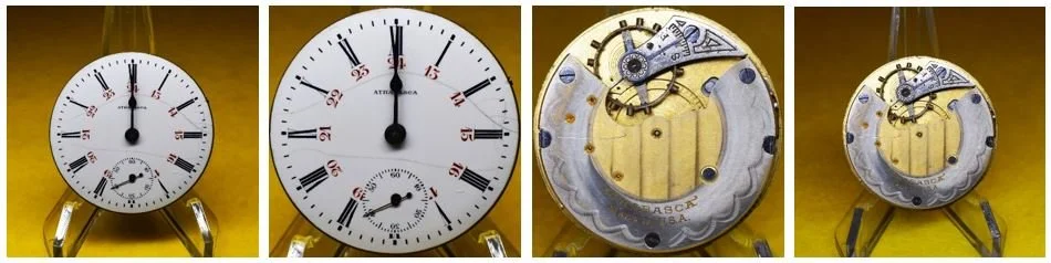 Athabasca is a private label in Seth Thomas 18-size open-face Model 12, and 6-size hunting Model 18.