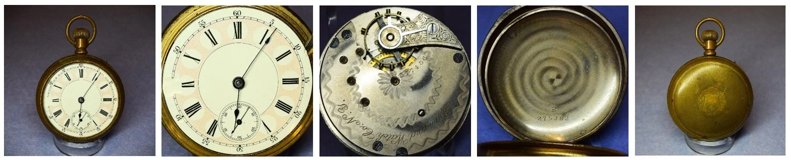 The Earle Watch Company private label pocket watches were manufactured by Seth Thomas for William G. Earle, a Philadelphia jeweler born in 1850, whose store was first located at 13 N. 9th Street and later at 1030 Market Street, from 1881 until his death in 1915. William G. Earle served as a Carrier for the U.S. Postal Service from 1871-1887, prior to becoming a jeweler.