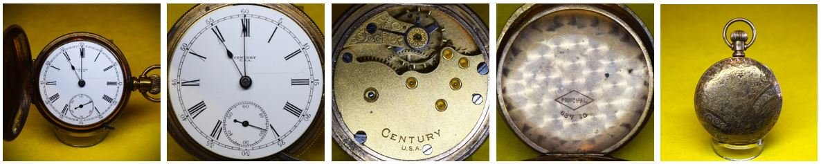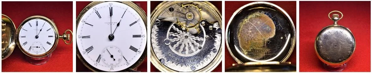 Century U.S.A. is a private label in Seth Thomas 18-size Model 10, Model 11, Model 12, and Model 13, and 6-size hunting Model 18 and 6-size open-face Model 24. Access the Seth Thomas Photo Album by Model Number to see more Century U.S.A. pocket watches.