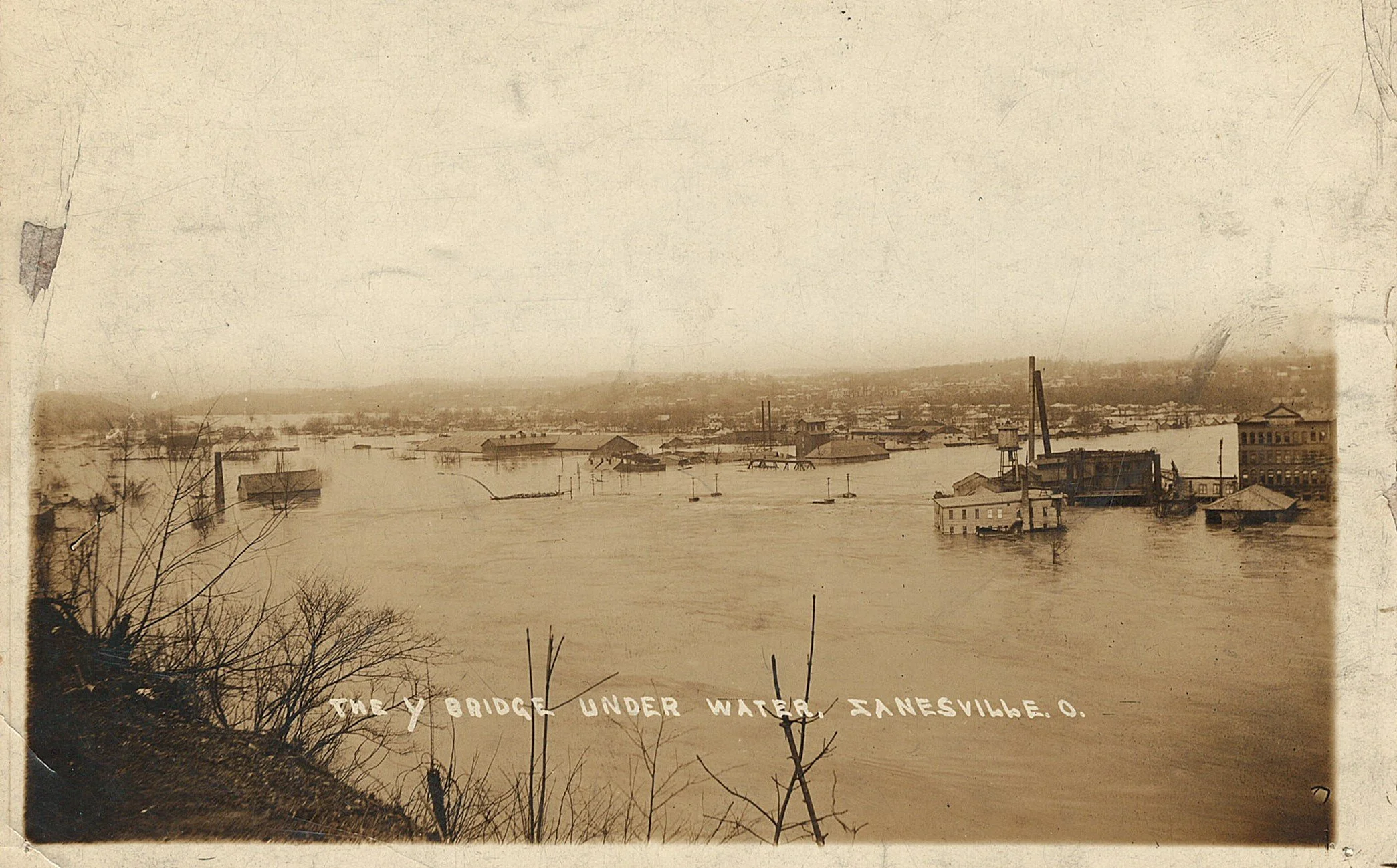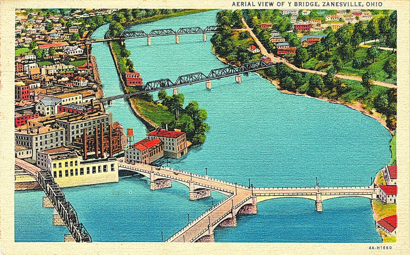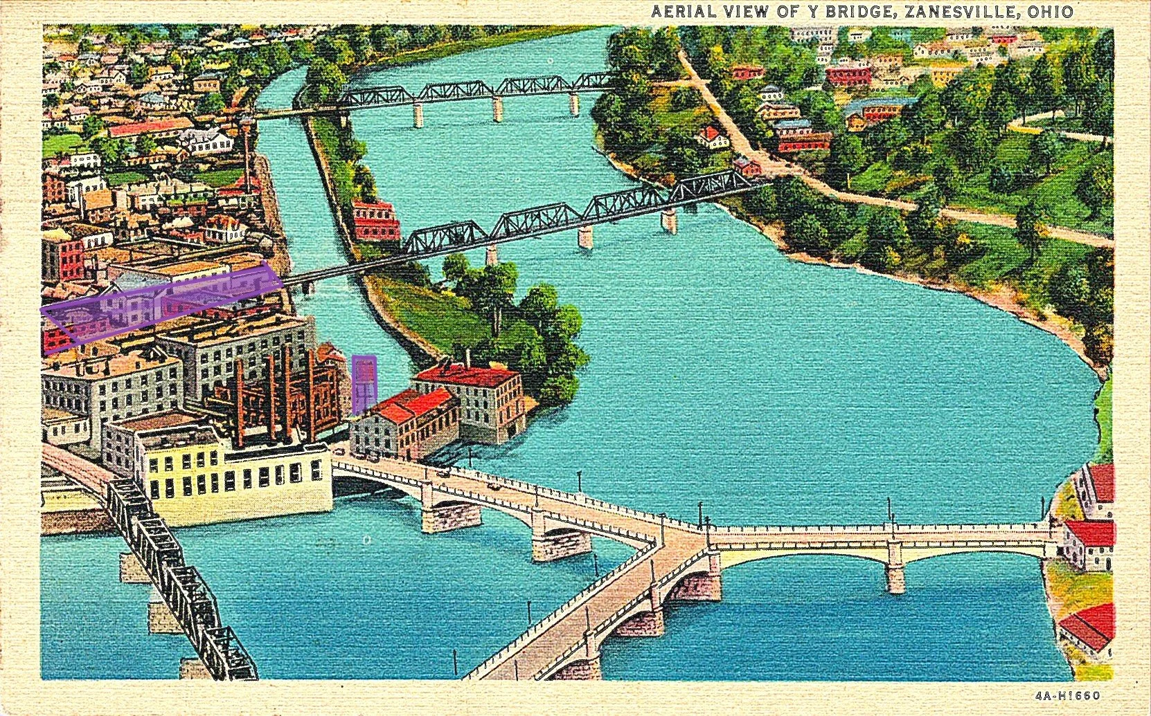 The paired photographs below show the lower end of Main Street where the John M. Bonnet wholesale and retail jewelry business was located, near the Zanesville Y-Bridge.