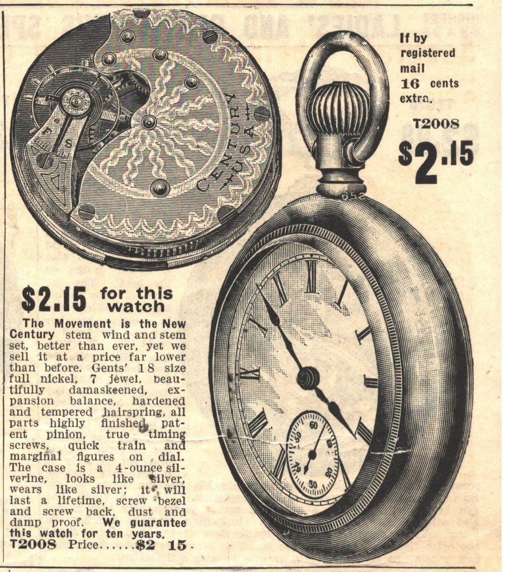The John M. Smyth Company’s Dictionary of Economy No. 62 contained advertisements for the 18-size Century U.S.A. movements that Seth Thomas produced for Sears, Roebuck & Company until 1902. After that they could also be seen in the catalogs of A.C. Becken, N. Sure Company, Holsman & Alter, and W.H. Lasselle.