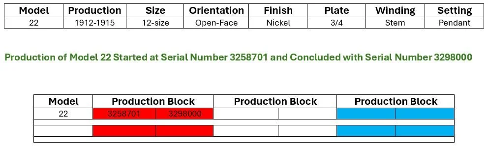 Seth Thomas Pocket Watch Models 21, 22, 24