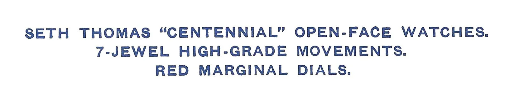 Within the 1913 Centennial Edition Trade Price List Seth Thomas introduced “Seth Thomas ‘Centennial’ Open-Face Watches”, 7-jewel high grade movements in three sizes. All of the movements were pendant set, utilized the Breguet hairspring, and came cased and timed from the factory.