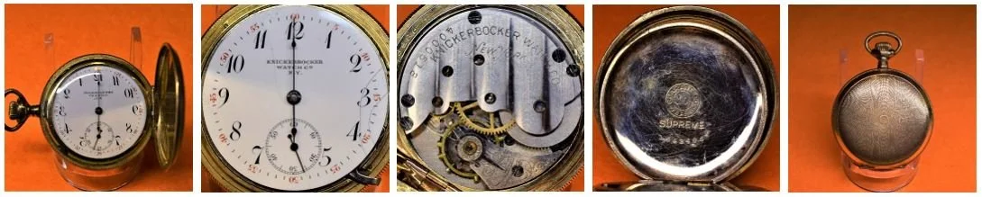 Knickerbocker Watch Co. is a private label in Seth Thomas 18-size open-face Model 12 and Seth Thomas 18-size hunting Model 13, Seth Thomas 6-size hunting Model 18 and Seth Thomas 6-size open-face Model 24.