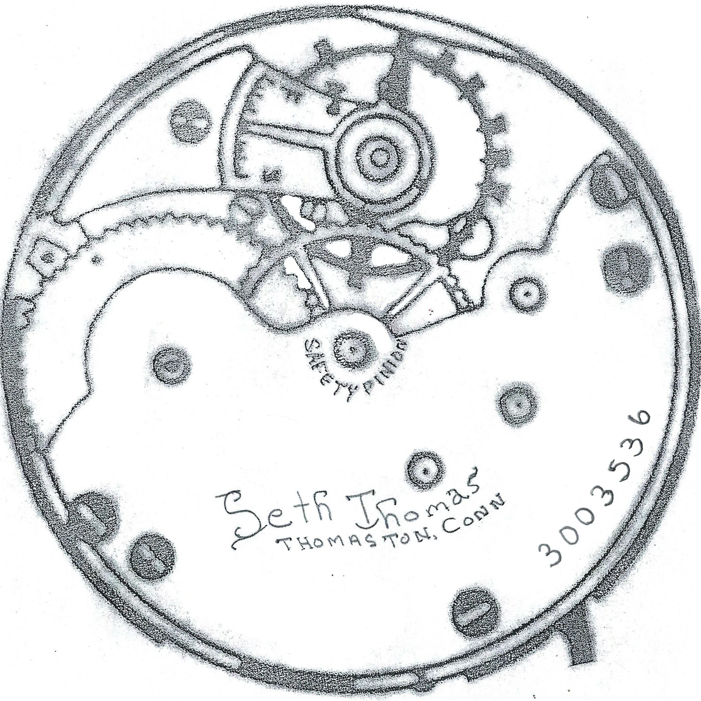 Seth Thomas 6-size Model 19 is represented in the Ehrhardt American Numbered Drawings as EA 821 and can be identified through the use of the drawing below: