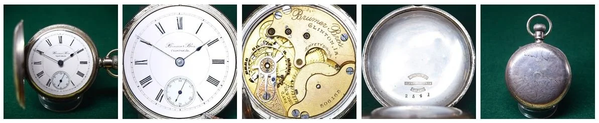 The movement is cased in an 18-size H. Muhrs Sons Watch Case Co., 20-year gold-filled Lion hunting pocket watch case, serial number 306419.