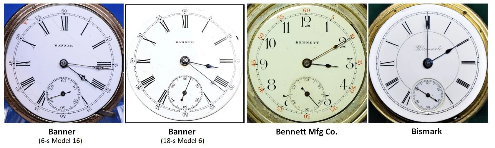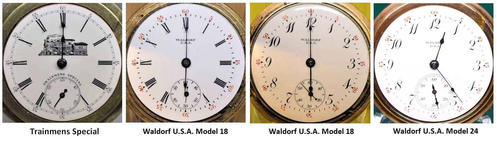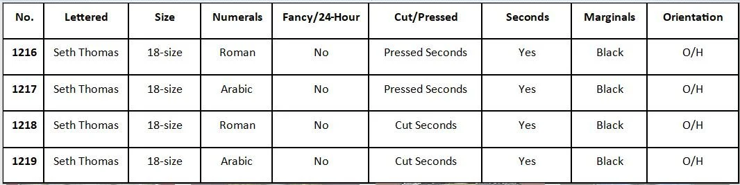 The Seth Thomas Watch Company did not leave us with Item Numbers for all of the dials that they produced. These are the un-numbered dials from some of the most common Named Grade and Private Label pocket watches that Seth Thomas produced.