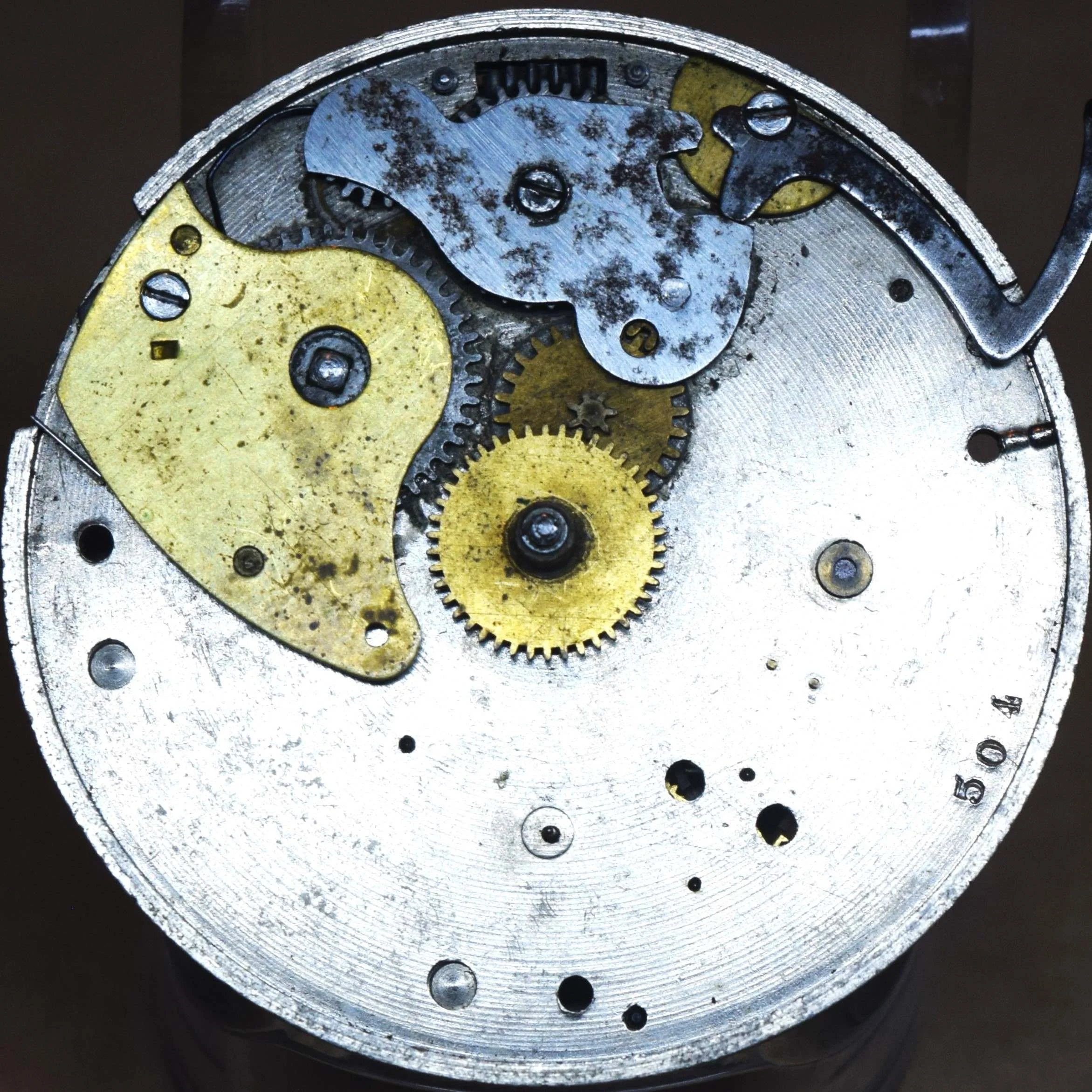 This Seth Thomas open-face 18-size Model 10 pocket watch was manufactured with a nickel finished 3/4 plate, 7 jewels, and it is non-adjusted. The movement is stem wound and lever set, with a flat hair spring, and plain/simple regulator. Its SETH THOMAS FAN Serial Number is CENTURY10A, and its grade is Seth Thomas named grade Century. The movement is signed “CENTURY U.S.A.”. Since none of the Seth Thomas Model 10 pocket watches have serial numbers marked on their top plate it is not possible to accurately state what order they were manufactured in. Partial serial numbers can be seen beneath the dial stamped on the pillar plate as seen (307) below. Unfortunately many are not stamped clearly. There are no known records of anyone’s attempt to catalog these numbers and see which “unassigned” serial number blocks they may have been manufactured from. This knowledge could help us to better understand when they were manufactured.
