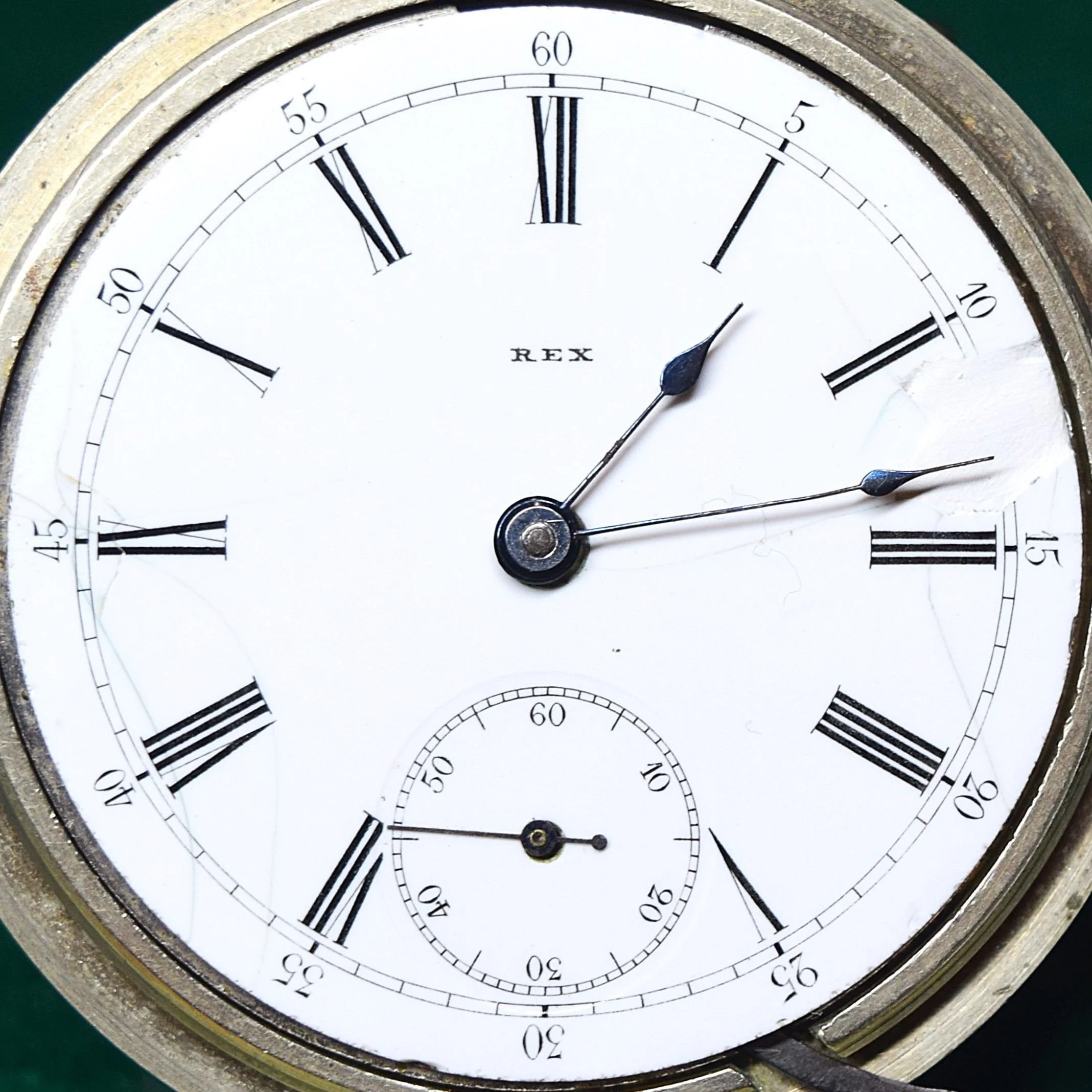 Rex is a private label in Seth Thomas 18-size open-face Model 12 and hunting Model 13. Rex was manufactured by Seth Thomas for Lapp & Flershem, a large wholesale jewelry house based in Chicago. Rex was significant for having no markings except for the serial number on the movement; and only “REX” on the dial. Information is listed below in the 1910 Price List and Advertisements can be viewed in the 1910 Lapp & Flershem “Busiest House in America” Catalogue.