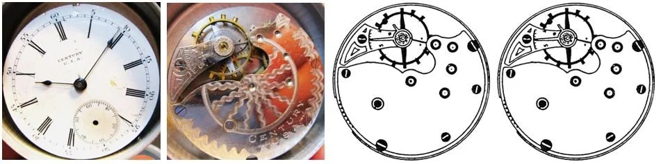 Century U.S.A. movements were phased out of the Sears, Roebuck & Co. Catalog product line starting in the Fall of 1901 with the introduction of the Edgemere line; and Century was gone in the 1902 Fall catalog. Century movements were then seen for sale in the catalogs of A.C. Becken, Brooks Optical, Butler Brothers of New York, N. Shure Company, John M. Smyth Company, Holsman & Alter, Lapp & Flershem, Moore & Evans, W.H. Lasselle, and Otto Young & Company. This new 1913 Centennial version of Century U.S.A. hasn’t popped up in any of the period catalogs that I’ve explored; but I really haven’t had an opportunity to explore very many.