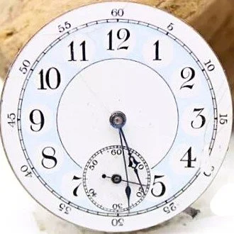 The movement presents with a 6-size unbranded private label Garden City Blue Arabic Fancy Dial with a ring minute track and black five-minute marginals, fitted with Seth Thomas Open Morning Glory hands 6-size.