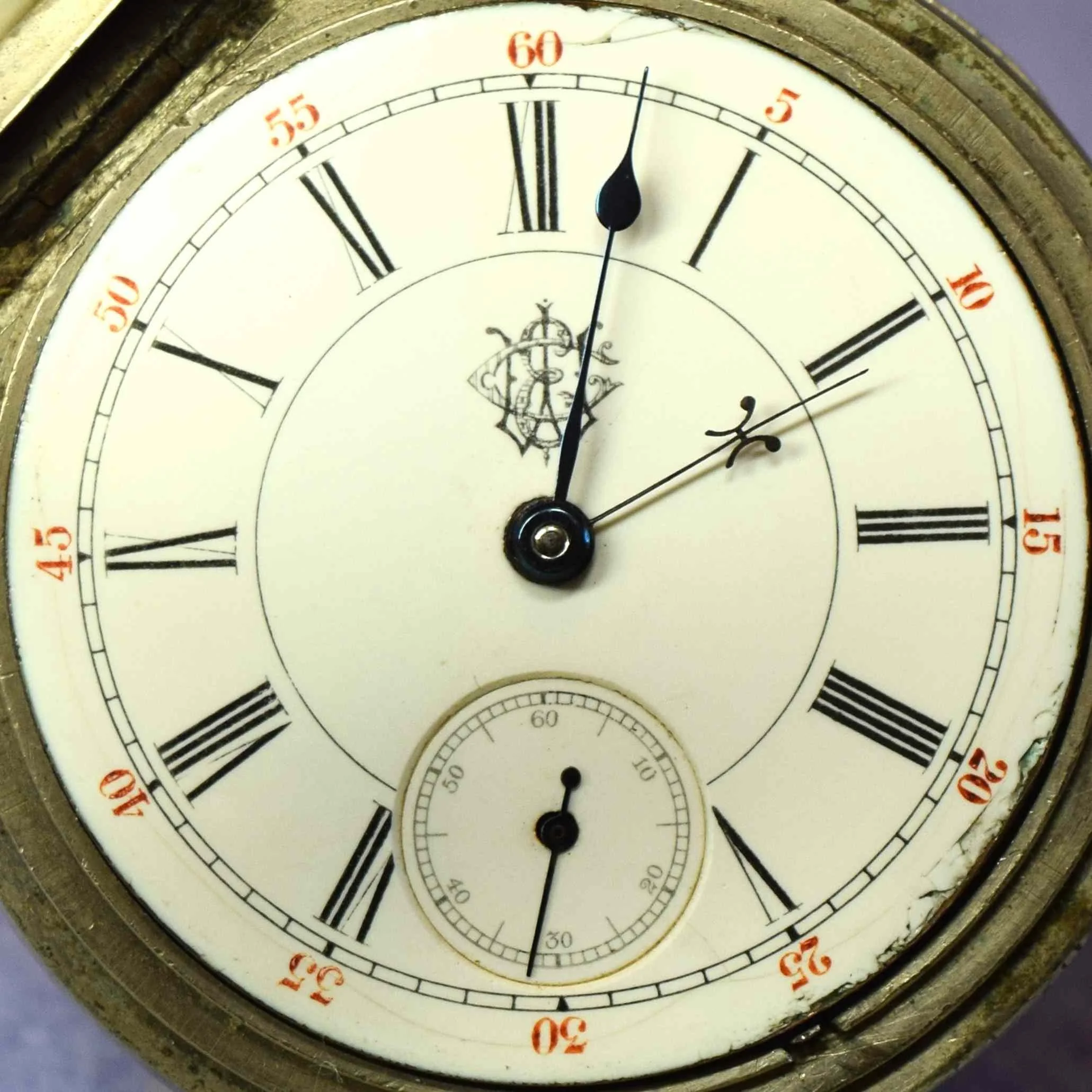 Serial number 505814, in Model 2, presents with an 18-size private label “EWC” Roman dial for Earle Watch Company with a ring minute track and no marginals.
