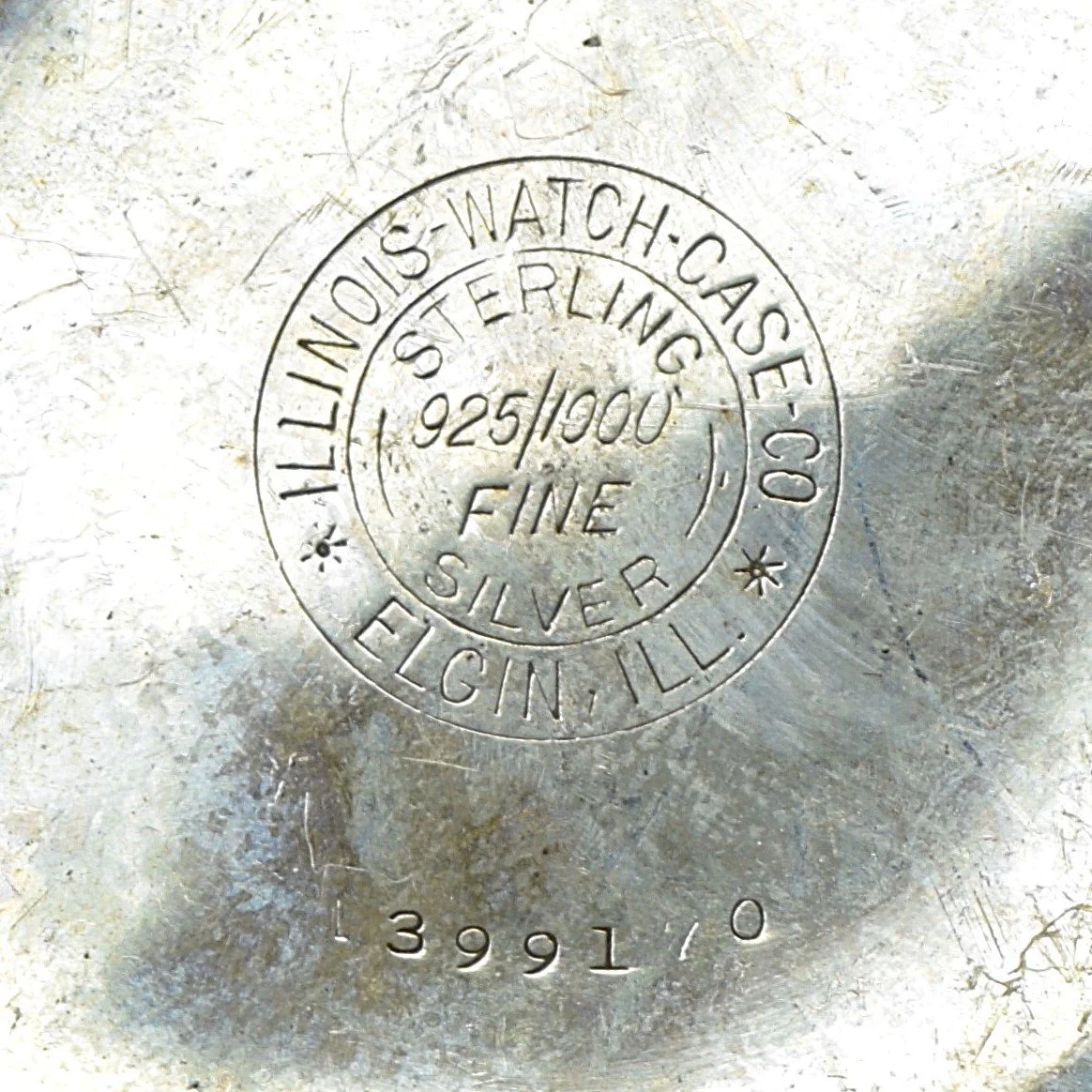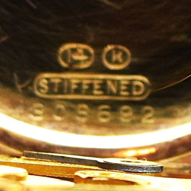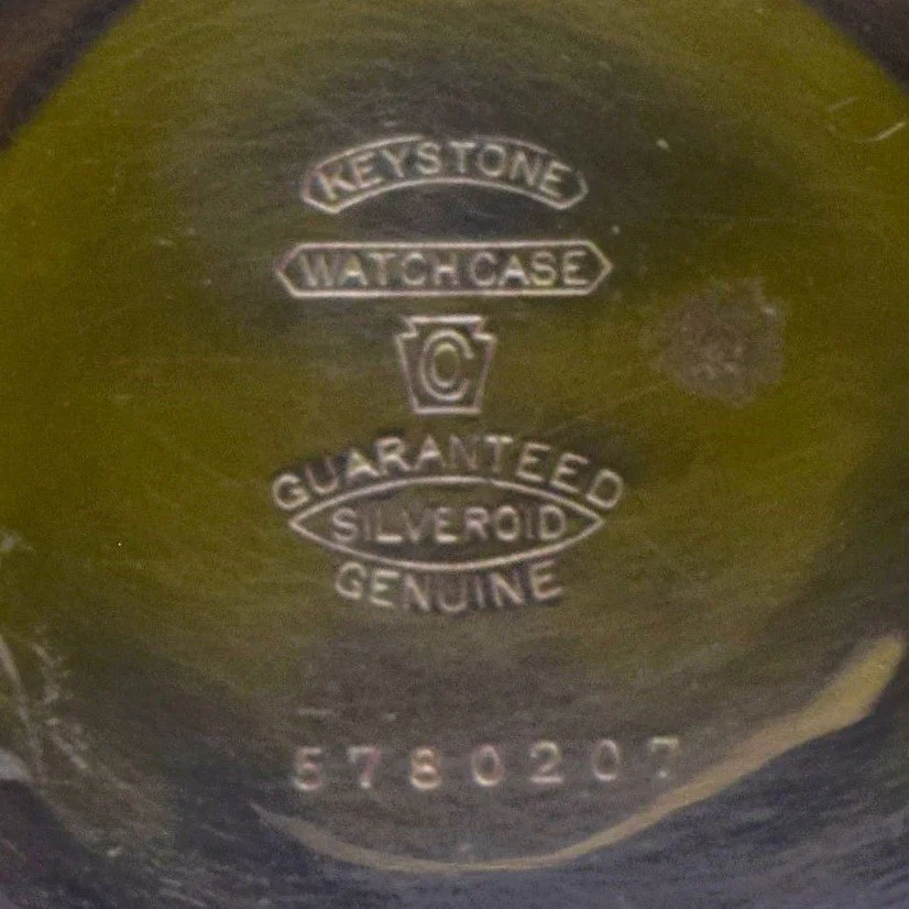Most pocket watch cases are marked with the manufacturer’s name or the manufacturer’s logo, the material that the case is made of, and a unique, manufacturer specific, case serial number. The information may be incomplete, vague/unclear, misleading, or missing altogether. The manufacturer’s name is frequently expressed with nothing more than the initials of the particular W.C.C. (watch case company), or a logo such as crown, a moon, a lion, a keystone, a star, or a shield. Be sure to include the logo when using the Watch Case Identifier described above, by putting brackets around the descriptor such as [crown] or [lion] to distinguish that text is not marked, just an image. The material that the case is made of is usually either nickel, Coin Silver (90% silver), Sterling Silver (92.5% silver), gold-filled, or even solid gold. Some pocket watch case manufacturers would only mark the case with a number indicating the weight or purity of the precious metal; but would not list the metal. An example might be a 3 or a 4 indicating 3 ounces or 4 ounces of Coin Silver; or 14k indicating 14 karat gold. Additional information such as “Guaranteed” or “Warranted” for “20 Years”, “10 Years”, or “5 Years” indicates that the pocket watch case is gold-filled, not solid gold.