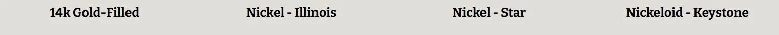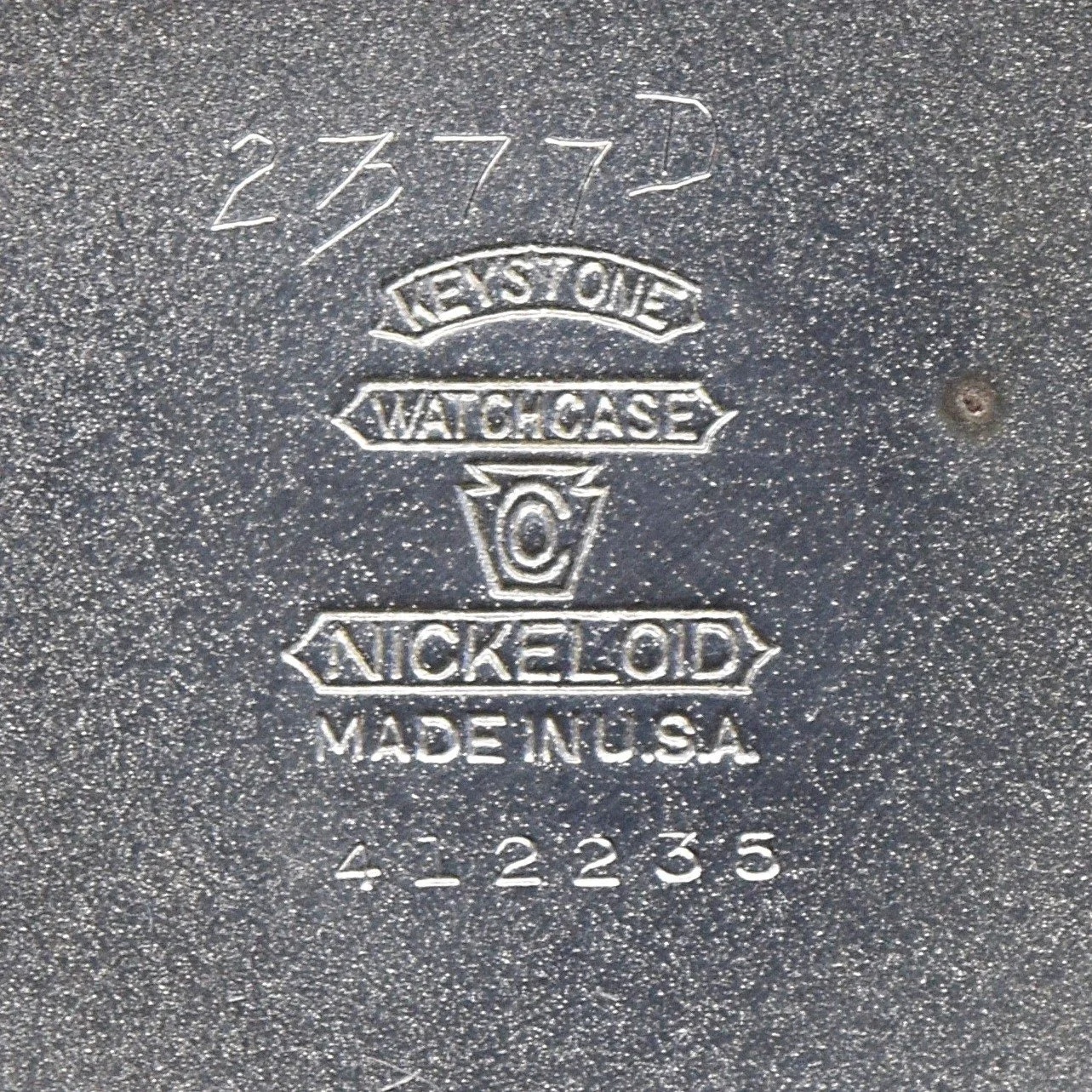 Manufacturers of nickel cases seldom labeled them as such; but used a fancy name that would imply a more precious metal was involved. Alaska Silver was a name for nickel that Philadelphia Watch Case Company used to mark some of its nickel cases. Nickeloid was a name for nickel that Keystone Watch Case Company used to mark some of its nickel cases. Nickel Silver was a name for nickel that Illinois Watch Case Company used to mark some of its nickel cases. Oresilver was a name for nickel that Fahys Watch Case Company used to mark some of its nickel cases. Silveride was a name for nickel that an unknown watch case company used to mark some of its nickel cases. Silverine was a name for nickel that Dueber Watch Case Company used to mark some of its nickel cases. Silverode was a name for nickel that Philadelphia Watch Case Company and H. Muhrs Sons both used to mark some of their nickel cases. Silveroid was a name for nickel that Keystone Watch Case Company used to mark some of its nickel cases.